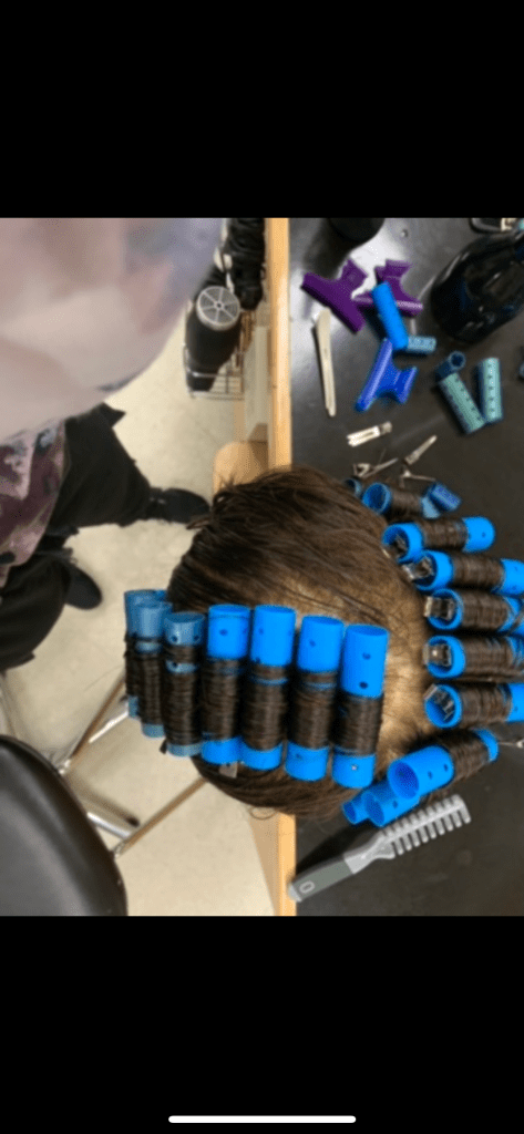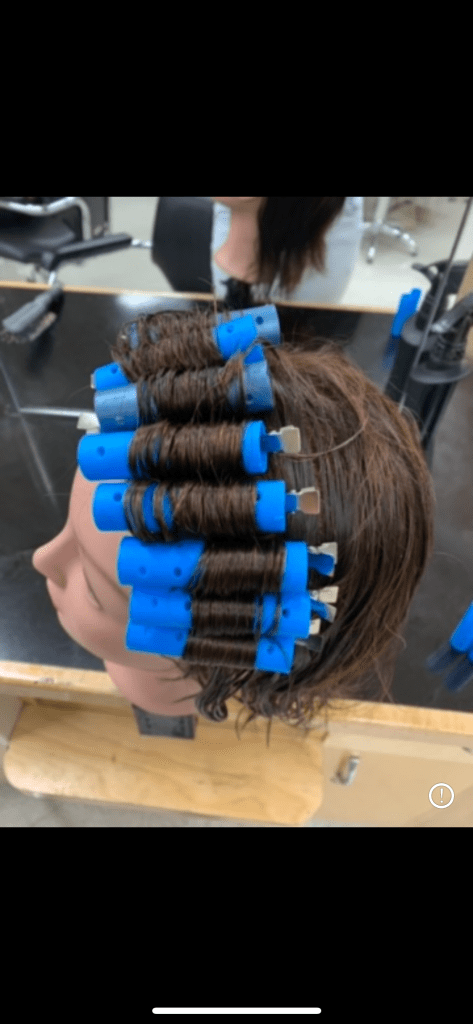 Shampoo rinse and hairstyle. First day of French braids Last day of French braids First day of short hair curling Last day of short hair curling First day of finger waves Last day of finger waves First day of perm curlers Last day perm curlers